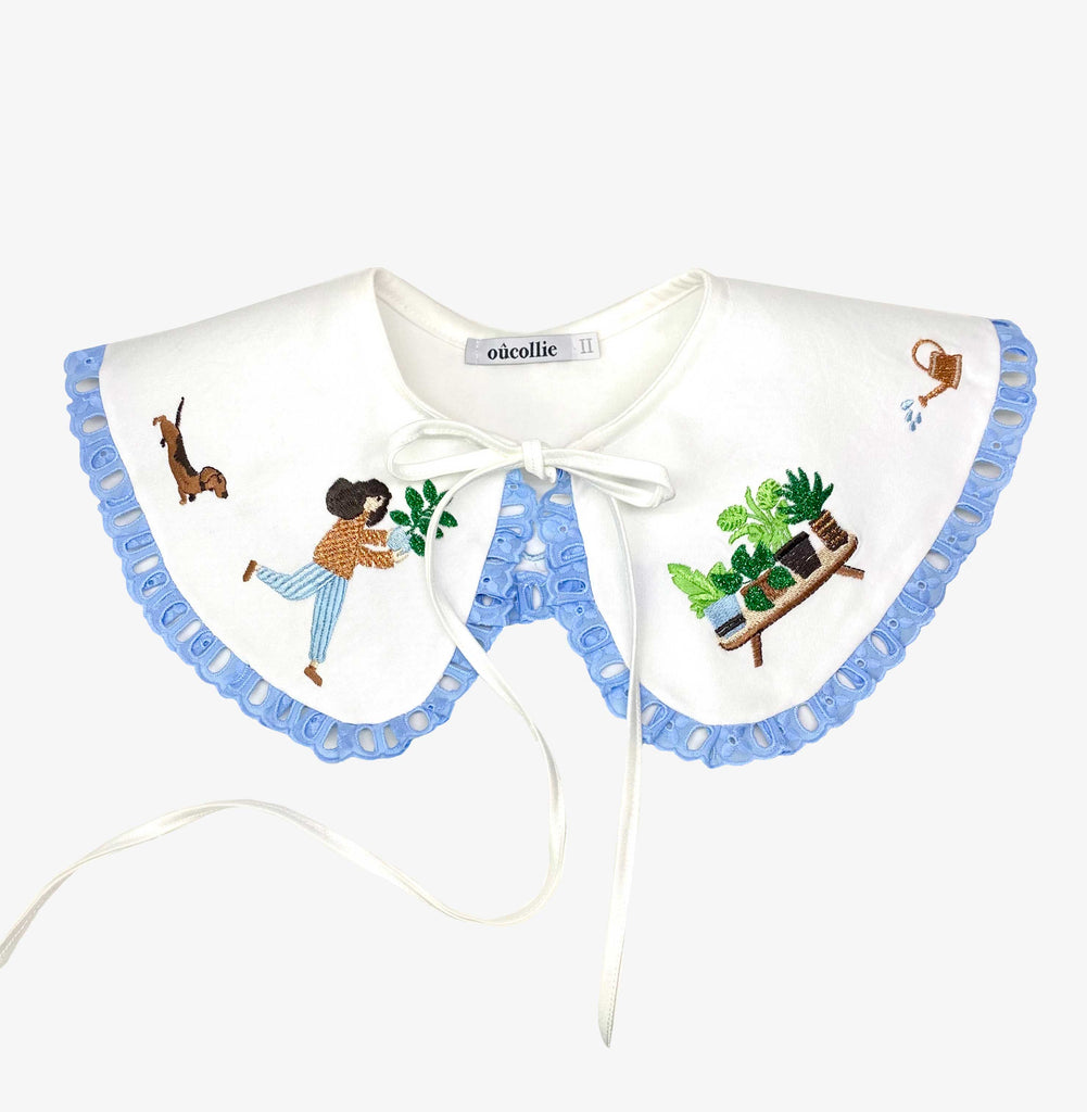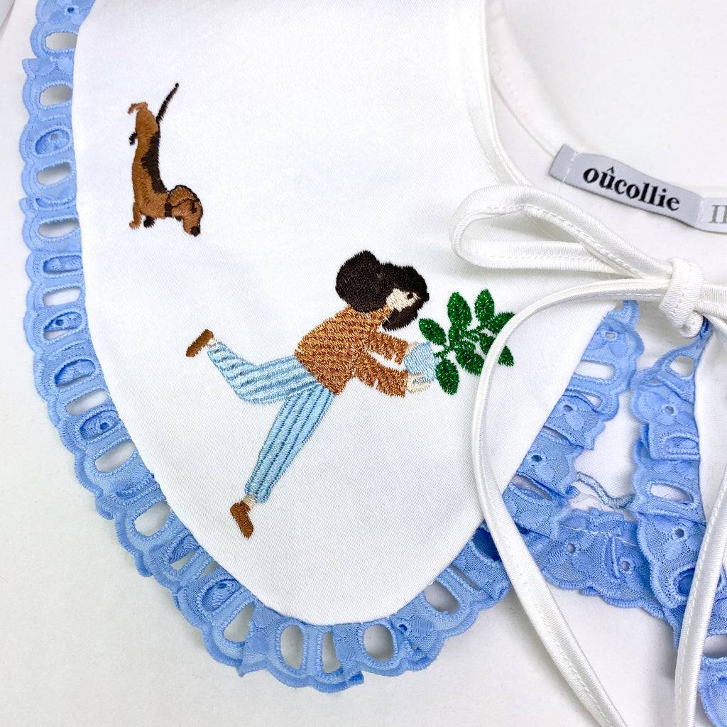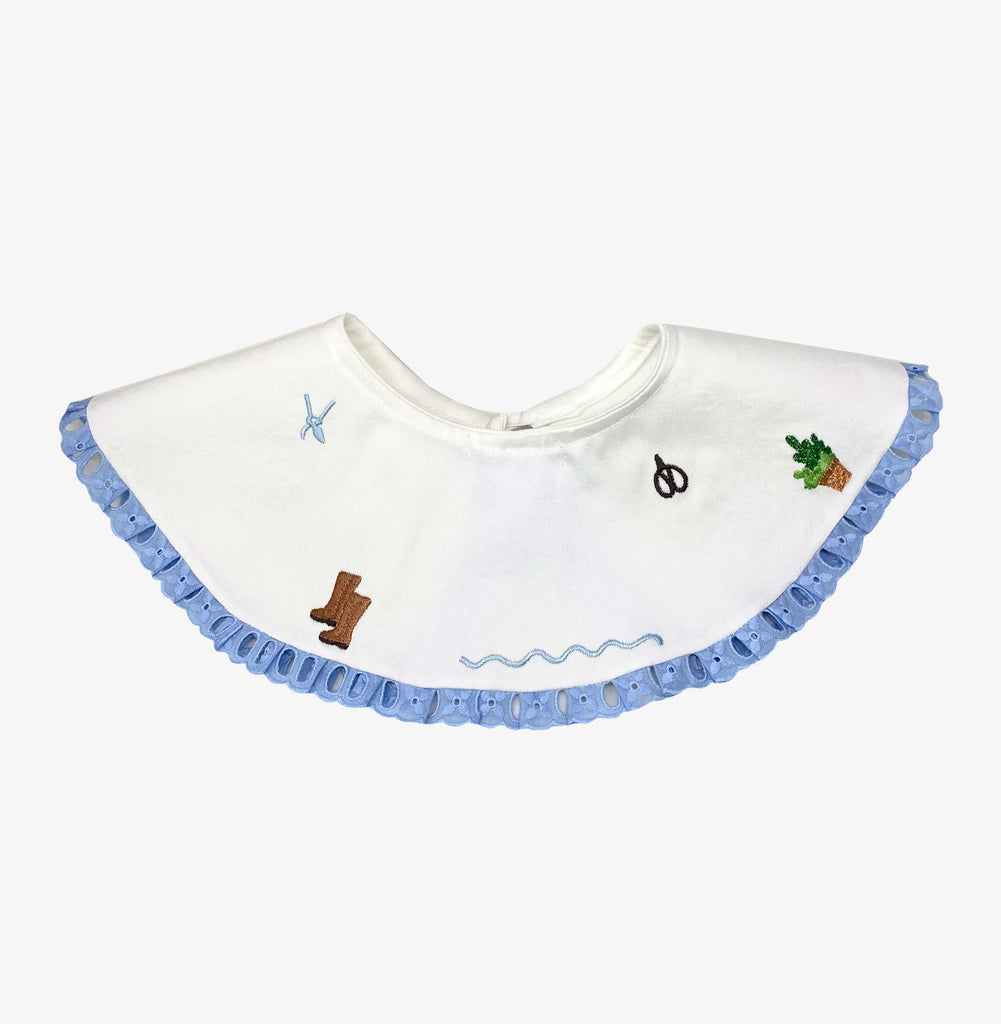 This collar is beautifully embroidered with garden motifs, hand-sewn and hand-finished in Poland with the utmost attention to every detail, so that it can celebrate with a child all important days in his life, for many seasons.