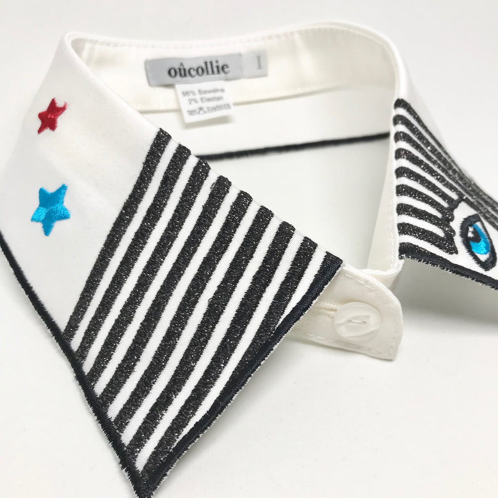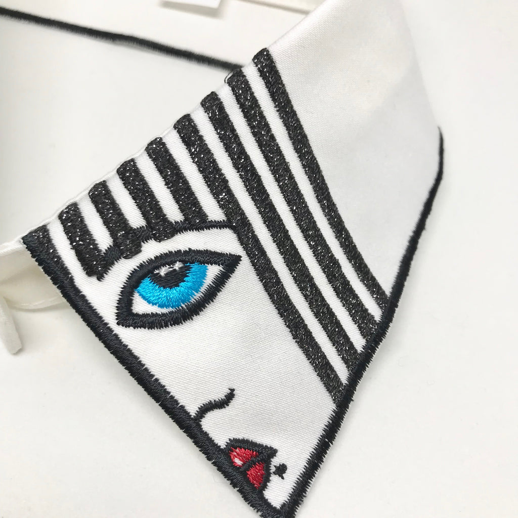 Their boundless ideas in decorating are a mine of designs for us. This time, for contradiction, we were fascinated by the purism of female faces from the streets of Tokyo. Graphic, hidden under a shiny thick fringe, decorated our Michiko collar.